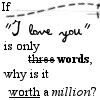 If ' I LOVE YOU' is only 3 words , why is it worth a million ? ; do you know e ans ? - yeah , it's all come from ur heart . how sincere ur love towards e person , how much u treasure e person , how much u really love dhat person n dhats why its WORTH a million .